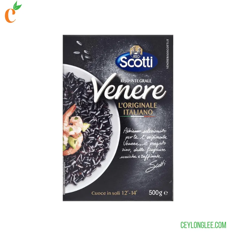 Indulge in the exotic allure of Gallo Venere Black Whole Grain Rice , a premium Italian rice with a rich history dating back to ancient Chinese emperors. Known as “forbidden rice,” this parboiled whole grain variety boasts a striking black hue and releases a fragrant aroma of sandalwood and freshly baked bread.
