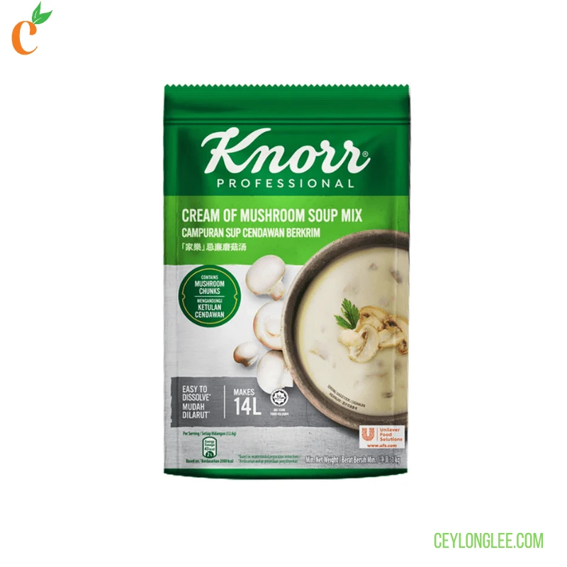 Indulge in the rich, creamy flavors of Knorr Cream of Mushroom Soup Mix , crafted with real champignon mushrooms to deliver a classic, great-tasting mushroom soup. Enhanced with high-quality ingredients like roux and non-dairy creamer, this mix ensures a smooth, velvety texture with consistent taste every time. Perfect for professional kitchens or home cooking, it dissolves easily without lumps and offers a chunky, rich mushroom flavor that’s ideal for soups, sauces, or as a base for other dishes.