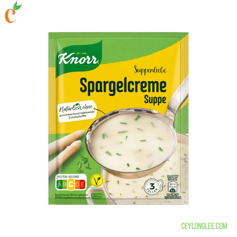 Indulge in the velvety richness of Knorr Suppenliebe Spargelcreme Suppe , a luxurious cream soup made with white asparagus and chives for an authentic, aromatic flavor . Crafted from high-quality, gently dried ingredients, this soup is free from artificial colors, preservatives, and flavor enhancers, offering a naturally delicious meal. Perfect for family dinners or quick lunches, it delivers 3 hearty servings per pack