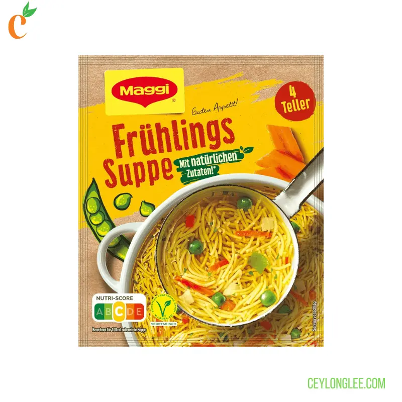 Savor the vibrant flavors of Maggi Bon Appetit Spring Soup , a delightful blend of tender pasta and garden-fresh vegetables. Made with 60.5% pasta (crafted from wheat flour and chicken egg white) and a medley of 12.1% vegetables, including leek, celery, carrots, peas, and tomatoes. this soup offers a light yet satisfying meal. Enhanced with iodized salt and a touch of sugar for balance, it’s perfect for quick lunches or cozy dinners. Simply prepare in minutes to serve 4 plates.