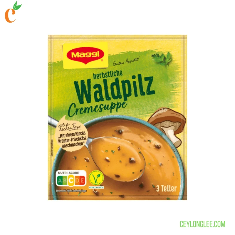 Indulge in the earthy richness of Maggi Waldpilz Cremesuppe , a creamy vegetarian soup crafted with 2.4% wild mushrooms, including butter mushrooms, button mushrooms, and chanterelles. Enhanced with a blend of corn starch, wheat flour, and yeast extract for a velvety texture, this soup balances savory depth with subtle herbal notes. Perfect for quick lunches or cozy dinners, it serves 4 portions in minutes—simply add boiling water.